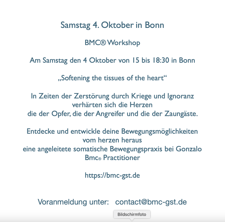Weiterleitung von Gonzalo: Liebe Tanzende! Am kommenden Samstag findet folgende Workshop statt: Bildschirmfoto 2025-09-22 um 08.44.20.png